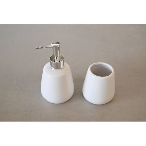 Nada melhor do que ter um banheiro organizado e com objetos proporcionando beleza ao ambiente não é mesmo Pensando nisso, a jolitex criou o kit banheiro branco em dois modelos diferentes para completar a decoração do seu banheiro. O kit possui 2 peças de cerâmica, sendo um dispenser para sabonete líquido e um pote para organização de itens da sua preferência, tornando o ambiente mais organizado e prático para o seu dia-a-dia e da sua família. A cor branca combina com qualquer decoração, além de dar um toque de requinte ao ambiente.