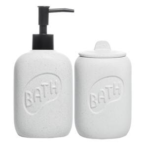 Kit Banheiro Em Cerâmica Letters Porta Sabão E Algodão