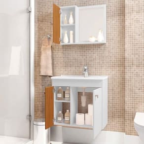 Conteúdo da Embalagem: 1 Espelheira, 1 Armário Superior, 1 Cuba, 1 Gabinete.