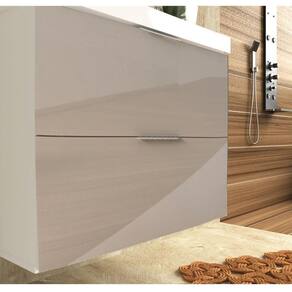 Frente das gavetas com revestimento em BP com efeito alto brilho.