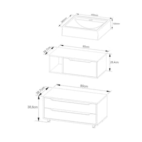 O Kit para Banheiro é a escolha ideal para dar um toque de elegância e organização ao seu espaço. Com um design contemporâneo, ele transforma o ambiente em um local mais convidativo e prático. Fabricado com materiais de alta qualidade, o kit oferece durabilidade e um visual sofisticado, tornando seu banheiro ainda mais funcional e bonito. CARACTERÍSTICAS TÉCNICAS: - Produzida em MDP de 15 mm - Acabamento UV na cor Branco - Cuba em Mármore Sintético - Gaveteiro com Corrediças Metálicas e Rodízios - Porta Basculante com Articulador e Dobradiças Metálicas - Puxador tipo Cava - Balcão Suspenso *Kit Composto por Gabinete Suspenso (3644), Gaveteiro (3643) e Cuba (3630) INFORMAÇÕES TÉCNICAS: 3643: Alt. 38,8 cm x Larg. 80 cm x Prof. 38,7 Cm x P. 15,4 kg 3644: Alt. 38,8 cm x Larg. 80 cm x Prof. 38,7 cm x P. 11,2 kg 3600: Altura: 10 cm x Larg. 40 cm x Prof. 38 cm x P. 5 kg INFORMAÇÕES ADICIONAIS: - ATENÇÃO: Não trabalhamos e não nos responsabilizamos pela montagem do móvel. Antes da montagem conferir se o produto está de acordo com o que comprou, produto montado e danificado pela montagem não será aceito troca. Montagem e instalação por conta do comprador. - As imagens ambientadas são meramente ilustrativas e podem apresentar itens que não compõe o produto. As cores do produto podem variar de acordo com o monitor, a iluminação do ambiente ou sua percepção visual. - Limpeza: Deve ser feita com pano macio e seco ou levemente umedecido com água e sabão neutro. Não devem ser utilizados abrasivos como palha de aço e objetos cortantes. -Garantia para defeitos de fabricação conforme Código de Defesa do Consumidor.
