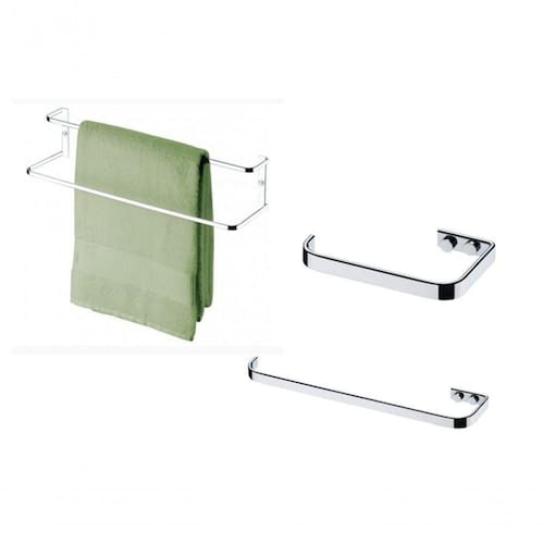 Kit Banheiro Lavabo 03 Peças Future Toalheiro 45 Cm Rosto 30 Cm Papeleira Kit de acessórios para banheiro contendo 3 peças conforme descritas abaixo: 01 Und Porta toalha duplo: Peso: 0.417 kg; Dimensões: 12 x 45 x A10cm modelo 1667 01 Und Porta toalha de rosto: Peso: 0.16 kg; Dimensões: 7 x 30 x A1,5cm modelo 2305 01 Und Papeleira: Peso: 0.14 kg; Dimensões: 8,4 x 13,5 x A1,5cm modelo 2300 Matéria prima base: Aço Carbono Acompanha kit p/ fixação na parede Aplicação: Acessório para banheiro Cor/Acabamento: Cromado.