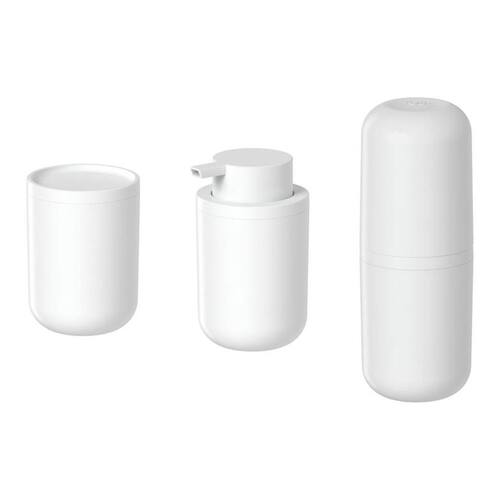 Aspen Decor F6371 Kit Banheiro Lavabo Bold 3 peças Organização de Pia Ou O porta algodão é a solução perfeita para manter o seu banheiro organizado e acessível. Com design minimalista e bordas arredondadas, ele se integra facilmente a qualquer decoração de banheiro. O porta sabonete líquido é a escolha perfeita para aqueles que buscam um toque de elegância e simplicidade na decoração do banheiro. ele combina perfeitamente com qualquer estilo de decoração. Além disso, sua construção resistente e fácil de limpar garante a higiene e praticidade que você precisa para manter seu banheiro organizado Informações Tecnicas: Porta Algodão Altura 10.7cm Largura 7.8cm Profundidade 7.8cm Peso 68g Material PS - Poliestireno Porta Escovas Altura 20.5cm Largura 7.8cm Profundidade 7.8cm Peso 118g Material PS - Poliestireno Porta Sabonete Altura 8.9cm Largura 7.8cm Profundidade 13.3cm Peso 94g Material PS - Poliestireno Capacidade 300ml Aviso Importante: -as cores dos produtos podem variar entre as imagens mostradas acima ou fotos da embalagem de acordo com calibragem de seu monitor ou smartfone'. ATENÇÃO: - Os objetos que ambientam as fotos não acompanham o produto. Imagens meramente ilustrativas. Observação: - Atenção ao tamanho do produto, ele é um encanto E como descrito acima. Confira as dimensões do produto no momento da compra e se certifique de que é o produto que deseja comprar. Marca: Não Informado