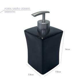 01 Porta Sabonete Líquido (390 ml): Dimensões 7,5 cm (L) x 7,5 cm (P) x 16 cm (A).01 Porta Escovas: Dimensões 7,5 cm (L) x 7,5 cm (P) x 11 cm (A).01 Saboneteira: Dimensões 12,2 cm (L) x 8 cm (P) x 2,5 cm (A).