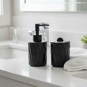 - Fabricado em cerâmica resistente - Acabamento texturizado com efeito marmorizado pontilhado - Design moderno que combina com diversos estilos de banheiro - Peças estáveis e fáceis de limpar - Ideal para organização da rotina diária