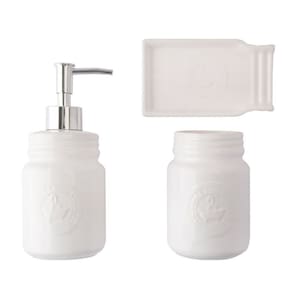 Kit Banheiro Lavabo Porta Sabonete Líquido Porta Escovas e Porta Sabonete Cerâmica
