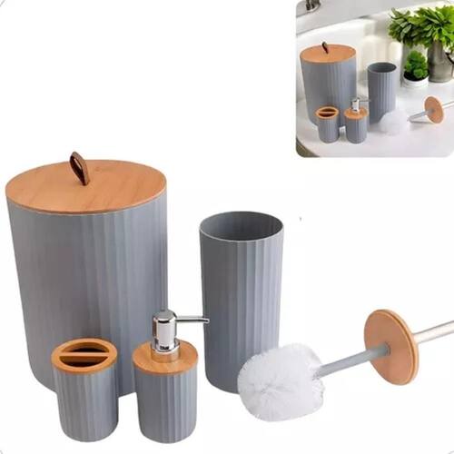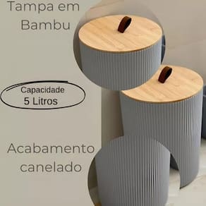 Kit Banheiro Lixeira 4 Peças Luxo Tampa Bambu Porta Escova