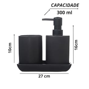 Características do Produto: Composição: Porcelana de alta qualidade, que garante durabilidade, resistência e estilo. Porta Sabonete Líquido: Capacidade: 300 ml Altura com dosador: 16 cm Altura sem dosador: 10 cm Diâmetro: 7 cm Porta Escovas: Altura: 10 cm Diâmetro: 7 cm Suporte para Banheiro: Comprimento: 17 cm Largura: 9 cm Altura: 2 cm