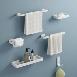 Kit para Banheiro Completo - Porta Toalha, Saboneteira e Gancho - Branco Kit para Banheiro Completo - Organização e Praticidade em 6 Peças 6 peças em aço branco: Porta toalha 45 cm , porta toalha rosto 22 cm , gancho, saboneteira, porta shampoo e porta papel higiênico. Dimensões inteligentes: Ideal para banheiros pequenos ou grandes. Cada peça foi projetada para otimizar espaço. Instalação simples: Vem com parafusos e buchas. Você mesmo instala em minutos. Material durável: Aço resistente à umidade, não enferruja e é fácil de limpar. Saboneteira e porta shampoo com ripas: Evita acúmulo de água e mau cheiro. Prático e funcional: Toalhas secam rápido, itens sempre organizados. Dúvidas frequentes: Cabe no meu banheiro Sim, as peças são compactas e versáteis. Aguenta peso Sim, cada gancho suporta até 5 kg. Precisa de para instalar Não, a instalação é simples e rápida. Marca: Não Informado