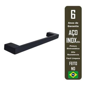 O Kit de parede Guriri Preta, proporcionará mais Sofisticação e Requinte para o seu lavabo. Todos os toalheiros são produzidos em Aço Inox AISI 304. O inox mais indicado para a confecção de produtos decorativos, tendo em vista a sua durabilidade e resistência quando em contato com a luz solar, a chuva e, até mesmo, a maresia. O acabamento é realizado com pintura eletrostática, oferecendo alta resistência e qualidade impecável no seu acabamento e funcionabilidade. Material: Aço inox Aisi 304 Acabamento: Pintura Eletrostatica Preto Fosco Perfil: 20x10mm Itens do Kit: 01 Pç Porta toalha de rosto 24cm Preto 01 Pç Cabide Preto 01 Pç Papeleira Preto 01 Pç Porta toalha 60cm Preto