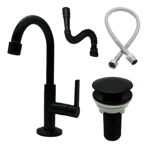 KIT LAVATÓRIO TORNEIRA BICA MOVEL MESA ABS PRETO + VÁLVULA CLICK BANHEIRO 7/8 ABS PRETO FOSCO + SIFÃO SANFONADO PRETO FOSCO + ENGATE MALHA DE AÇO 40CMNa embalagem contém:01 Sifão Sanfonado01 Torneira Lavatório Bica Móvel01 Engate 40cm Malha de Aço01 Válvula Click 7/8 Abs PretoEngate Mangueira Flexível Trançado Aço Inox Quente Fria 40 cmPARA PRESSÃO DE ÁGUA ALTAO Engate Mangueira Flexível Trançado Aço Inox, indispensável para a instalações de torneiras, caixas acopladas, o engate malha de aço é um equipamento que não pode faltar na cozinha, banheiro ou lavanderia da sua casa, produzido em Aço inoxidável, possui grande resistência para alta pressão, e por ser flexível, adapta-se a qualquer tipo de instalação com muita facilidade.ESPECIFICAÇÕES TÉCNICAS DO PRODUTO E GARANTIA-Marca: Shop hidráulica-Tipo: Engate Mangueira Flexível-Material: Malha De Aço Inoxidável-Bitola Entrada Água: 1/2" Polegada-Utilização: Conexões de Torneiras ou Caixas AcopladasVálvula Click Para Banheiro Lavatório Escoamento 7/8 Abs Preto FoscoComprando com a gente você não precisa se preocupar, pois nosso corpo técnico já se preocupou com todos os detalhes para que você tenha em mãos um ótimo produto.ESPECIFICAÇÕES TÉCNICAS:-Diâmetro do encaixe na pia: 5,6 Centímetros (Medida Superior)-Diâmetro saída: 7/8”-Saída para engate de Sifão de 7/8”-Acompanha tampão em ABS-Composição: Corpo Válvulas - ABS / Tampão - ABS / Porca - ABS-Produto de fácil instalaçãoTubo Extensível Sifão Sanfonado Preto UniversalÉ um produto versátil e prático que facilita a instalação de diversos componentes em ambientes hidráulicos, como pias, tanques e lavatórios. Fabricados em plástico de alta qualidade, esses tubos garantem resistência, durabilidade e flexibilidade, adaptando-se a diferentes necessidades de instalação.CARACTERÍSTICAS:- Flexibilidade: Permitem ajustar o comprimento de acordo com a necessidade, facilitando a instalação em locais com medidas irregulares ou de difícil acesso.- Versatilidade: Compatíveis com diversos tipos de pias, tanques e lavatórios, podendo ser utilizados em instalações residenciais e comerciais.- Resistência: Fabricados em plástico de alta qualidade, suportam altas temperaturas e pressões, garantindo durabilidade e segurança.- Facilidade de instalação: Acompanham conexões rosqueadas ou de encaixe rápido, facilitando a instalação e dispensando a necessidade de ferramentas especiais.- Acabamento preto: Proporcionam um visual moderno e elegante para a sua cozinha ou banheiro.APLICAÇÕES:- Ligação de pias: O tubo extensível universal preto pode ser utilizado para conectar a cuba da pia à rede de esgoto e ao encanamento de água fria.ESPECIFICAÇÕES TÉCNICAS:- Marca: Shop hidráulica- Garantia: 1 ano- Material: Abs- Cor: Preto- Comprimento máximo: 65 cm- Comprimento mínimo:35 cm- Bitola: 7/8" x 1.1/4" x 1.1/2"- Temperatura Máxima: 50°CTORNEIRA PIA LAVATÓRIO BANHEIRO BANCADA MESA ABS PRETO FOSCO BICA MÓVEL 1/4 DE VOLTA LUXO.Projetada com um único comando, será fácil de operar e ajustar a pressão que você está procurando. Além disso, tem a vantagem de ser simples em sua instalação, resistente e uma opção perfeita para economizar espaços.O arejador incluído no bico, torna a água macia e espumosa. Mas, além disso, ao reduzir a pressão contribui para economizar até 30% de água.ESPECIFICAÇÕES TÉCNICAS:- Marca: Shop hidráulica- Garantia Fabricante: 1 ano- Material: Abs- Posição de Instalação: Mesa/Bancada- Bitola: 1/2"- Pressão Mín.: 3 m.c.a- Pressão Máx.: 40 m.c.a- Vazão Mín.: 3 l/m- Vazão Máx.: 16 l/m- Mecanismo: 1/4 de volta- Ciclo de abertura: 1 estágio- Composição: Corpo: Abs / Volante: AbsGarantia de fábrica: 1 ano