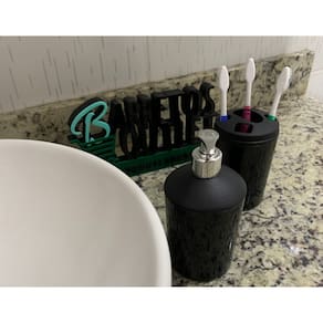 Kit banheiro one de duas peças Utility com tampa removível, conta com design inovador. Excelente para quem quer ter um charme no banheiro e um kit compacto para dar beleza e economizar espaço. Com capacidade máxima para até 04 escovas de dentes, ele também tem espaço para guardar a pasta de dente. O porta sabonete liquido conta com um sistema que evita desperdício e sujeira.