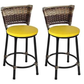 Kit 2 Banquetas Altas Prata com Encosto Junco Capuccino Assento Preto