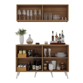 Kit Bar Armário Aéreo E Aparador 4 Portas Retrô Multimóveis Mp1086 Rustic/branco Rustic/branco Receba seus convidados com estilo e sofisticação com o Kit Bar Armário Aéreo e Aparador 4 Portas Retrô Multimóveis MP1086. Fabricado em MDP (15mm) com acabamento acetinado (cerca de 20% de brilho), garante durabilidade e resistência. Composto por um aparador e um armário aéreo com 4 portas e prateleiras, oferece amplo espaço interno para organizar bebidas, copos e outros itens de bar. Seu design clean proporciona um visual moderno que combina com qualquer tipo de decoração. Além disso, o aparador possui pés retrô em polipropileno que oferecem estabilidade e um charme vintage. Conteúdo da Embalagem: 1 (um) Aparador 1 (um) Armário Aéreo Manual de Montagem Kit Ferragem