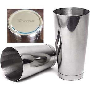 - Informações Coqueteleira profissional Barpro: Coqueteleira profissional Barpro 2 copos Tin e Mini Tin ambos Com peso na base. Fabricada em Aço Inox de alta qualidade 820/550ml Tin 28oz e Mini Tin 18oz - 2pçs O produto é composto por duas peças no formato de copos, as Quais se encaixam uma à outra na hora de você agitar os ingredientes para fazer Seus drinks, amos os copos com contra peso nas bases.