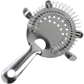 - Strainer coador inox 4 apoios: Esse produto consiste em basicamente ser um prato circular Com uma mola espiral em semi-circulo para que se adapte automaticamente a Recipientes de vários tamanhos e formas Coqueteleira, Mixing Glass, etc . Modelo Hawthorne Strainer com 4 Apoios, todo fabricado em aço inox que proporciona maior durabilidade e de Fácil limpeza.