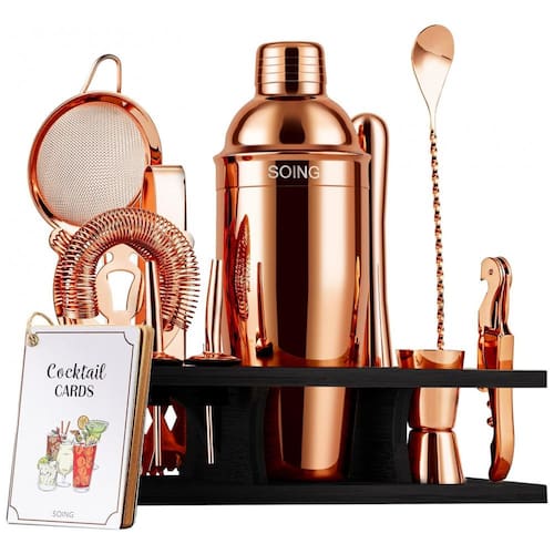 FAZER SUAS PRÓPRIAS BEBIDAS PODE SER TÃO FÁCIL Este kit de bartender de 11 peças tem todas as ferramentas de coquetel que você precisa para fazer suas próprias bebidas em casa. já fez um coquetel sozinho ou nunca Hora de compartilhar suas próprias bebidas com seus amigos e familiares SUPORTE DE MADEIRA EXCLUSIVO PARA ZENAMENTO E EXPOSIÇÃO É hora de mostrar o bar de sua casa para seus amigos. Com este elegante suporte de madeira, seus convidados serão definitivamente atraídos por esta decoração única. os acessórios de coquetel organizados você nunca mais precisa se preocupar em perdê los UM PRESENTE PERFEITO E ÚNICO Definitivamente Seja aniversário, aniversário, dia dos pais ou Natal. Todas as ferramentas de bar cuidadosamente projetadas com suporte de madeira elegante e receitas de coquetéis, eles vão adorar QUALIDADE SUPERIOR Todos os acessórios são feitos do melhor SS304 e SS430. Todos os acessórios de coquetel são duráveis, de alta resistência à abrasão e à prova de ferrugem