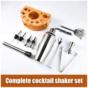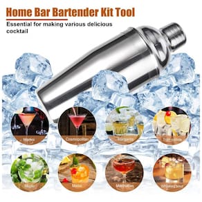 Premium Bartender Kit Você pode criar bebidas feitas a partir de uma ampla variedade de licores com esta coqueteleira profissional de aço inoxidável, incluindo Frozen Blue Margarita, Margarita, Tequila Sunrise, Pink Lady, Singapore Sling, Mojito, Martini, Whiskey, Scotch , Vodka, Gin, Rum, Saquê e muito mais. Você pode usá lo para misturar qualquer tipo de bebida que desejar.
