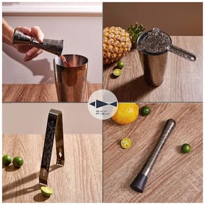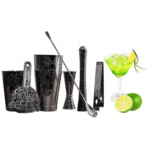 O kit bartender do SKY FISH é bem delicado. Você certamente amará e abraçará a maneira como eles são gravados com intrincadas e autênticas gravuras barrocas. O design simplesmente leva você de volta à idade de ouro dos nobres. Os conjuntos de coqueteleira são únicos e perfeitos para qualquer evento. Sua estrutura é elegante e elegante, o que os torna um complemento perfeito para sua cozinha requintada. A elegância do kit de ferramentas Bar e seu aço inoxidável de qualidade premium brilham com graça perfeita e adicionam realeza à sua cozinha. Tem as clássicas gravuras delicadas dos tempos antigos. Apenas um conjunto de shaker de Boston como este pode corresponder à nobreza e estatura. O conjunto de coqueteleira de cor preta fará você se sentir como um cavaleiro da meia idade. Com este conjunto de bartender em suas mãos, você se sentirá requintado e poderá abafar todos os ruídos do dia. Desfrutar de um coquetel no final do dia com a maior paz e um conjunto de coquetel puro e elegante é uma sensação que todos vocês devem estar ansiosos, ocasionalmente. E, com essas ferramentas clássicas de coquetel, você certamente se sentirá assim Essas ferramentas de coquetel, com seu elemento histórico, atenderão ao seu calibre e excelência e aprimorarão o gosto de sua família. Você deve ter o coquetel mais elegante em todas as festas que oferecer, seja no aniversário ou no jantar Se você possui um gosto de realeza, deixe seu kit de bartender retratar isso também