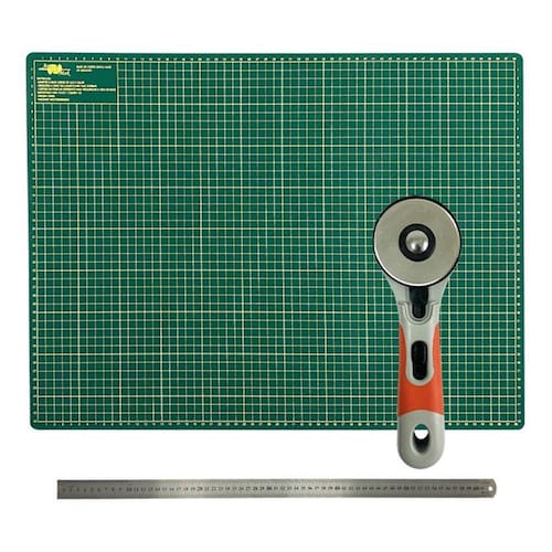 Kit com Base de Corte A1 90x60 Dupla Face Flexivel Para Patchwork Scrápbook Régua de inox 60 Cortador Circular disco de 60mm Base de Corte A1 90x60x3mm Dupla face. Base de Corte Flexivel fabricada em PVC emborrachado, tecnologia autocura, base autorregenerativa.Trabalhe com estilete, cortadores circulares sem riscar seus moveis.Marcações Nítidas de Centímetro, meio centímetro, polegadas, ângulos e graus. Cortador Rotativo Circular 60mm Tecidos, Papel, E.V.A entre outros. Cortador com Cabo Emborrachado, formato anatômico.Melhor empunhadura, mais firmeza e precisão na hora do corte.Lâmina de 60mm super afiada, pode ser trocada facilmente.Possui trava de segurança.Pode ser utilizado por destros e canhotos.Trabalhe com Tecidos, Papel, E.V.A entre outros. Régua de aço inox de 60cm ideal de uso geral. Marcações em centímetros, milímetros e polegadas.Tamanho: 60 cm Largura: 2,6cm Marca: Adb
