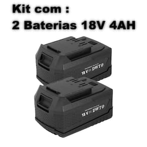 Kit composto de 2 Baterias 18V 4Ah DWT + 1 Carregador de Bateria DWT - Bateria 18V lítio 4 Ah IBD 1804 DWT linha intercambiável Bateria de íons de lítio, garantindo alta eficiência de operação. Possui indicador de nível de carga. Os três LEDs vermelhos indicam o status de carga da bateria. Um LED aceso: indica baixa carga; dois LEDs acesos: metade da carga; e três LEDs acesos: bateria carregada. Possui entrada de ar para sistema de refrigeração, base emborrachada que ajuda a prevenir riscos em superfícies e absorver impactos leves. Indicada para a linha de ferramentas a bateria intercambiável DWT. Carregadores indicados: carregador de bateria 18 V ICBD 1805 6014180500 ou carregador de bateria carga rápida 18 V ICBD 1806 6014180600 . Garantia legal: 90 dias + Garantia contratual: 9 meses DETALHES TÉCNICOS Modelo:ibd1804 Tipo de bateria:Íons de lítio Tensão V :18 V Capacidade da bateria A :4,0 Ah Indicador de bateria fraca:Sim Massa aproximada peso :0,71 kg- - Carregador de bateria DWT Carregador de bateria 18 V, linha intercambiável, carregamento convencional, ICBD 1805, DWT 1 Carregador de bateria. Bivolt automático. Indicado para carregar as baterias modelos IBD 1802 e IBD 1804, da linha intercambiável DWT. Tempo de carregamento aproximado : bateria de 2,0 Ah - 1 hora / bateria de 4,0 Ah - 2 horas. Carregador com carregamento convencional. Garantia legal: 90 dias + Garantia contratual: 9 meses Para locadoras, garantia única e exclusiva de 90 dias DETALHES TÉCNICOS Modelo:icbd 1805 Tensão de entrada do carregador de baterias:100 V - 240 V - Bivolt automático Frequência:50 Hz/60 Hz Tipo:carregamento convencional Tensão de saída do carregador de bateria:20 V Corrente de saída do carregador de bateria:2,3 A Tempo de carregamento:Bateria de 2.0ah - 60 minutos; Bateria de 4.0ah - 120 minutos Massa aproximada peso :0,444 kg Ean: 7908481207792