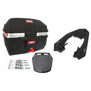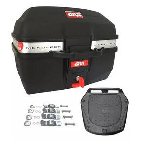 Especificações: • Marca: GIVI • Modelo: E27M • Capacidade: 27 Litros • Cor: Preto • Chaves: 2 • Encaixe: Monolock • Acompanha Base Monolock e parafusos • Dimensões: Altura 30cm x Largura 38cm x Profundidade 31cm