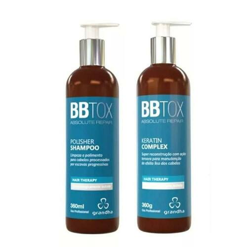 Kit BBTOX Absolute Repair 360ml Grandha Hair Therapy: A linha de produtos BBtox, é rica em polifenóis de frutas vermelhas, o que lhe confere uma excelente ação antioxidante, promovendo com o uso ganhos cumulativos de regularização do PH, extremamente necessário aos cabelos processados quimicamente. Conta também com o ácido hialurônico, introduzido à fórmula através da tecnologia nano, aderindo à cutila dos fios dos cabelos, conferindo-lhe massa, hidratando e preenchendo as imperfeições causadas por processos químicos como progressivas, descoloração, colorações, e outras químicas que causam pororidade. O Kit BBtox, é um tratamento completo especialmente indicado para cabelos maltratados por processos químicos, como alisamentos, descoloração, colorações, principalmente quando perdem massa e tornam-se porosos. Ao ganharem massa, os fios pesam, tornando-se mais comportados assumindo uma aparência mais lisa. Principais Ativos: Ácido Hialurônico Polissacarídeos de Tamarindo Kit Composto por: 01- BBTOX - Polisher Shampoo 360ml 01- BBTOX - Keratin Complex 360g Ean: 7909463520991