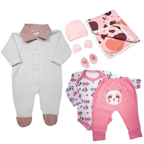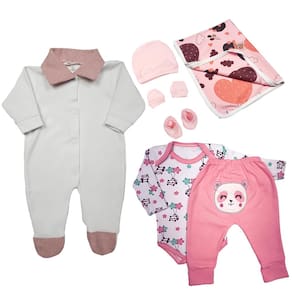 Kit Roupa de Bebê 8 Peças Conjunto Body Mijão Macacão Kit Touca e Cueiro