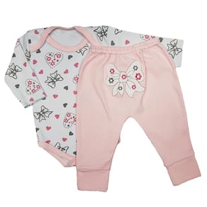 1x Conjunto Body Manga Longa Estampado e Mijão Bumbum Bordado (2 peças)