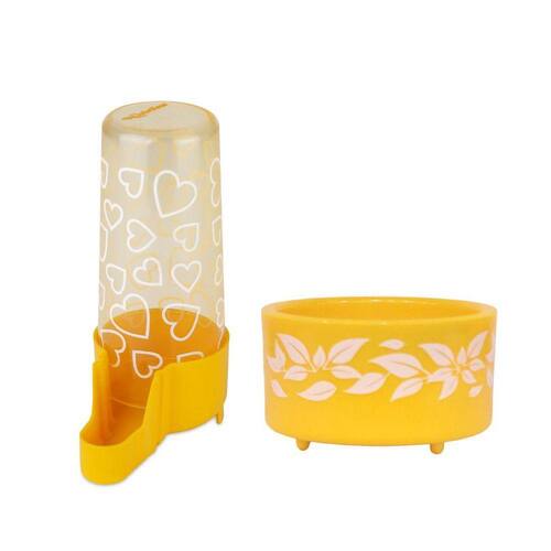 Kit bebedouro e comedouro calopsita / agaporni amareloO kit contém 1 bebedouro de 100ml injetfour + 1 pote de farinhada 70ml- bebedouro só love decorado injetfourPara gaiola de malha larga- pote farinhada para aves calopsitas / agapornis Especificações técnicasPeso: 50g Material: plástico de alta resistência simula porcelana com pés que travam no fundo da gaiolaMarca: injetfourDiâmetro: 7 cmAltura: 3,5 cmCapacidade: 70 ml