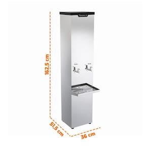 Especificações Bebedouro: - Modelo com 2 torneiras; - Revestimento interno do tanque em polipropileno; - Refrigeração através de gás refrigerante R-134a; - Isolamento térmico em poliuretano injetado; - Pia em aço inox 430, com dreno; - Serpentina interna em aço inox 304; - Acompanha filtro 5 e mangueira; - Termostato com 7 níveis de regulagem; - 4C no nível 7; - Pés com regulagem de altura; - Ideais para ambientes com grande circulação de pessoas; - Fácil instalação; - Revestimento externo em aço inox 430 brilhoso; - Tensão: 127V monofásico; - Sistema: Compressor; - Potência: 1/10HP; - Corrente: 2,1 A; - Medidas totais: 162,5cm A x 36cm L x 51,5cm CaracterísticasP; - Medidas da embalagem: 178cm A x 47cm L x 46cm P; - Peso Líquido: 32kg; - Peso Bruto: 45kg;