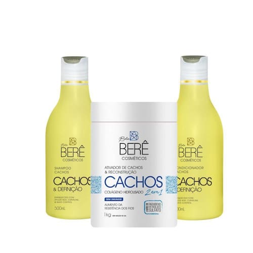 Kit Bela Berê CACHOS Shamp Condic Ativador Reconstrução 1kg Kit Bela Berê CACHOS Shamp Condic Ativador Reconstrução 1kg Este Kit Contêm:- bela Berê - Cachos & Definição - Shampoo 500ml- bela Berê - Cachos & Definição - Condicionador 500ml- bela Berê Ativador de Cachos & Reconstrução 2X1 s/ enxague 1KG A linha Cachos e Definição da Bela Berê Cosméticos hidrata intensamente os fios, deixando-os com leveza e definição, proporciona cachos perfeitos. O Condicionador Cachos é um condicionador capilar que condiciona os fios, deixando-os hidratados e leves. Livre de parabenos, óleo mineral, sulfato, pretolato, parafina, silicone e sem adição de sal. CURVELINI é baseado na extração dos preciosos ingredientes ativos das sementes de linho dourado e contém a combinação perfeita de fibras solúveis com propriedades bioadesivas, proteínas e óleos ricos em ácidos graxos essenciais. Possui elevadas concentrações de ácidos graxos, Ômega 3 e 6 com propriedades condicionantes e emolientes e proteínas reparadoras da fibra. Wave Control é um ativo tecnológico indicado especificamente para cabelos cacheados. Tem ação reparadora que conserva os cachos naturais e repara os fios de danos externos integralmente, doando vida aos cabelos quimicamente tratados. Promove uma melhor absorção, obtendo-se dessa forma brilho, maciez e condicionamento intenso Styleze W-20, é um termopolímero catiônico, em solução aquosa, que oferece benefícios únicos e características de performance superiores quando comparamos com outros polímeros desenvolvidos para condicionamento e modelagem dos cabelos. Através de uma tecnologia patenteada o STYLEZE W-20 é a solução para as necessidades capilares em facilitar uma modelagem com duração e fixação do penteados. Proporciona condicionamento e cachos definição de cachos. O Ativador de Cachos e Reconstrução da Bela Berê Cosméticos é um creme capilar rico em Colágeno Hidrolisado que forma um filme protetor envolto aos fios deixando-os mais resistentes, além de melhorar a hidratação dos cabelos. Livre de parabeno, petrolato e sulfato, além de não ter adição de SAL. Marca: Bela berê
