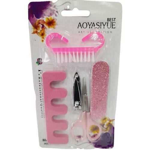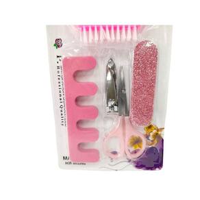 01 Escova de Unhas, 01 Lixa com Glitter, 01 Tesoura de Unha, 01 Cortador de Unhas e 01 Separador de Unhas.