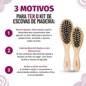 Este kit foi pensado para proporcionar uma experiência completa de cuidado capilar, garantindo fios mais saudáveis e bem cuidados. Invista na qualidade e na durabilidade da madeira para um toque natural em sua rotina de beleza.