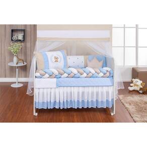 O Kit Berço Trança Urso Teddy Azul Menino Bebê 11 Peças é perfeito para proporcionar conforto e estilo ao quarto do seu bebê. Composto por 11 peças, o kit é completo e já vem pronto para o uso, com o enchimento incluso.