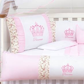 - Kit Protetor Berço Coroa Rosa 11 Peças