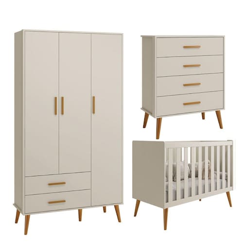 Kit Berço 2 em 1 Comoda Gaveteiro e Roupeiro Isis 3 Portas - Areia