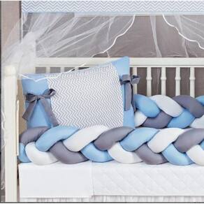 Kit berço masculino duas tranças laterais e edredom azul claro segurança e beleza para o berço 12 peças