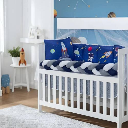 Kit berço baby dream 10 peças super aconchegante e charmoso Cor: astronauta Kit berço baby dream 10 peças - aconchego e charme para o seu bebê Tudo que você precisa para noites tranquilas e dias cheios de conforto para o seu pequeno.