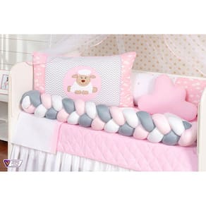 Kit berço carneirinho trança infantil kit americano para bebê Cor: rosa Kit berço carneirinho trançado menino e menina 11 peças kit americano para bebê com edredom e saia