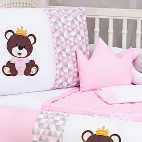 Kit Berço Com Saia Box Trança Para Menina 14 Peças Rosa Total 14 peças