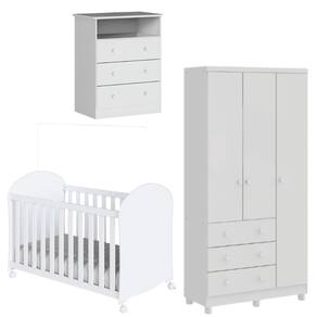 A Cômoda Smim Infantil complementa o kit oferecendo organização prática no dia a dia. Possui 3 gavetas com corrediças telescópicas , ideais para roupas, brinquedos e acessórios. Equipada com sistema antitombamento e pés reguláveis em ABS, une segurança e funcionalidade com acabamento branco.