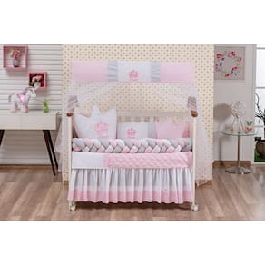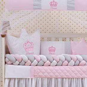 O Kit Protetor Berço Coroa Trança Rosa Menina Princesa é perfeito para criar um ambiente encantador e seguro para sua princesinha. Com detalhes delicados e uma coroa como destaque, esse kit vai transformar o berço em um verdadeiro trono para sua bebê.