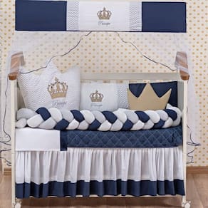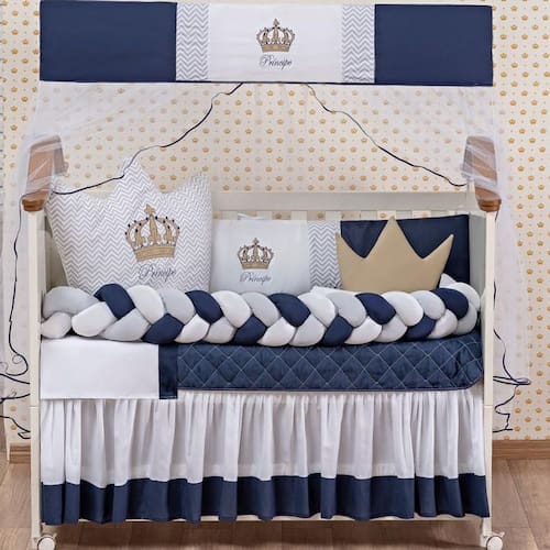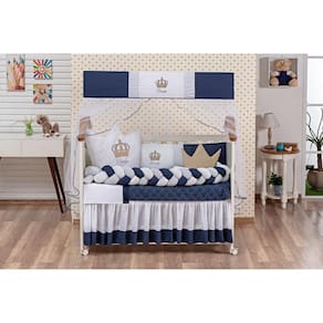 O Kit Protetor Berço Trança Coroa Azul Enxoval Masculino é perfeito para proteger o berço do seu bebê com muito estilo e conforto. Composto por diversas peças, esse kit vai deixar o cantinho do seu pequeno ainda mais encantador.