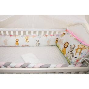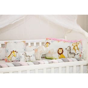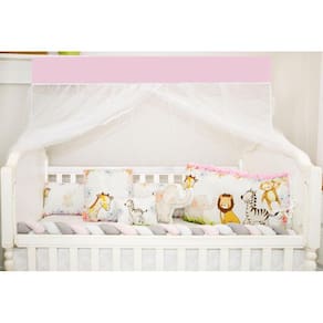 Kit Berço Feminino 10 Peças Americano Safari Rosa Completo Kit Exclusivo 10 Peças: 01 COBRE LEITO 0,95CM X 1,50M01 LATERAL 1,25M X 28 CM01 TRANÇA 1,35M X 12CM01 BANDÔ C/ MOSQUITEIRO 1,38M X 1,74M01 LENÇOL INFERIOR 70CM X 1,30M01 FRONHA 33CM X 26 CM01 CABECEIRA 66CM X 38CM01 TRAVESSEIRO 20CM X 26CM01 ALMOFADA FORMATO 31CM X 19CM01 ALMOFADA QUADRADA 35CM X 35CM COMPOSIÇÃO: TECIDO 100% POLIESTERTECIDO ESTAMPADO: 100% ALGODÃOENCHIMENTO: 100% POLIÉSTER Excelente para a segurança e conforto do seu bebê, com medidas para berço americano, traz elegancia necessária para o quarto.