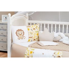 Kit Berço Leão Completo 11 Peças Bege e Branco Unisex Saia Total 11 Peças