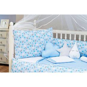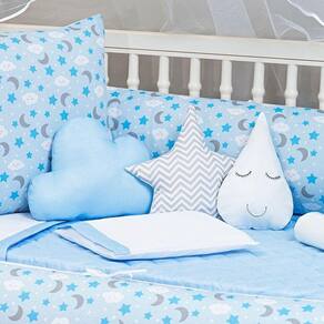Leia atentamente a descrição do anúncio, este kit acompanha 8 peças conforme citadas abaixo, não acompanha todas as peças da foto.Total 8 peças____________________________________________________________1 cabeceira------------------0.60x0.40 mts2 laterais -----------------------1.25x0.25mts1 bando do mosqueteiro---1.40x0.20 mts1 mosqueteiro---------------4.50x1.50 mts1 almofada nuvem --------0.40x0.20 mts1 almofada gota ----------0,30 x 0,22 mts1 almofada estrela---- 0,30 x 0,30 mts____________________________________________________________Descrição das pecas :Tecido estampado: 100% algodãoTecido liso: 50% algodão| 50% poliésterEnchimento 100% poliésterMosqueteiro 100% poliamidaInformações importantes:O produto já vai pronto para o uso, com o enchimento já incluso.Acompanha as peças conforme a descrição, não esta incluso o berçoA cabeceira e as laterais do kit possuem zíper para retirar o enchimento, facilitando assim uma possível lavagem do produto. Marca: L2m