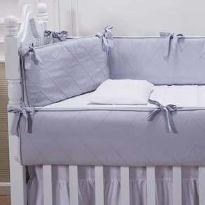 Tipo de berço:Americano e Nacional Acompanha jogo de lençol:Sim, 3 peças Acompanha trocador:Não Acompanha mosquiteiro:Não Coleção:Percal Possui Edredom ou cobre leito:Não Número de peças:07 Peças Possui zíper:Sim Possui Enchimento:Sim Possui Bordado:Não