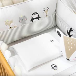 Com o Kit Enxoval de Berço 7 Peças Woodland, você cria um ambiente minimalista e lúdico para o seu bebê, trazendo os encantos dos bosques para dentro do quarto. A almofada com pompons em formato de raposa adiciona um charme especial ao conjunto, deixando tudo ainda mais fofo.