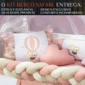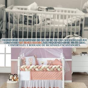 Kit Berço Safari Menino 11 Peças Estampado de bichinhos + Naninha COR: ROSE Transforme o quartinho do seu bebê em um verdadeiro safári cheio de amor